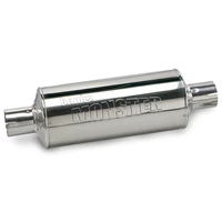 Monster Exhaust Benefits. Replacing the restrictive stock muffler with Banks free-flowing Monster muffler makes a huge difference in airflow, sound, and performance. The Banks muffler has a large inlet and outlet where the exhaust flows straight through, compared to the torturous stock design with hairpin chambers that build up back-pressure. Only Banks Monster Muffler has an expansion chamber to alleviate the nasty drone that other straight-through mufflers are known for. Banks utilizes durable ceramic packing with a high temp rating so it won't degrade like fiberglass. Add it all together and you get a muffler that flows over three times better than stock and delivers a pleasing, throaty rumble!d 7.3L Key Features: Superior Flow and Rich, Throaty Sound Straight-through flow path Exclusive expansion chamber dissipates annoying mid-range drone Flows up to 201 percent better than stock Authoritative, but never overpowering, exhaust sound Polished-stainless steel 4 inch diameter in/out CARB E.O. Not Required