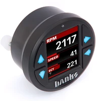 Banks iDash is the smallest, most powerful plug-n-play OBD-II monitor and control interface on the market. It now seamlessly integrates with the Banks Six-Gun/EconoMind Tuner and/or SpeedBrake. Owners of theseBanksBus I systemscan easily add or upgrade to an iDash Super Gauge or iDash DataMonster by using thesuppliedeasy-install kit. With its easy to read 2- to 8-gauge user selectable LCD display, the iDash 1.8 reads a multitude of engine parameters as well as internal data directly from the Banks tuner or SpeedBrake. It also opens a whole new world of Banks exclusive calculated parameters not available on any other device. It quickly controls the tuner power level and can be used to easily set the SpeedBrake mode and vehicle deceleration speed. Set custom low and high alerts for any engine parameter. Monitor max and min values for a user selectable list of parameters. Read and clear trouble codes on-the-fly. Customize the navigation button and LCD display colors, brightness, and even the rate at which they dim at night. Daisy chain 4 iDash gauges and view up to 32 parameters simultaneously. Add Banks sensor modules such as the 4-channel analog module, 4-channel thermocouple module, and AirMouse Ambient Air Density Module for nearly infinite vehicle and weather analysis.Daisy chain 4 iDash gauges and view up to 32 parameters simultaneously. Add Banks sensor modules such as the 4-channel analog module, 4-channel thermocouple module, and AirMouse Ambient Air Density Module for nearly infinite vehicle and weather analysis. For those who want to record their vehicle's parameters, the iDash is also available as an extremely powerful DataMonster, which adds data logging for up to 100 user selectable parameters at a rate of up to 20 samples per second. With the included microSD card, owners can log over a months' worth of continuous data. Data can be played back right on the iDash or transferred to a computer for deeper analysis.