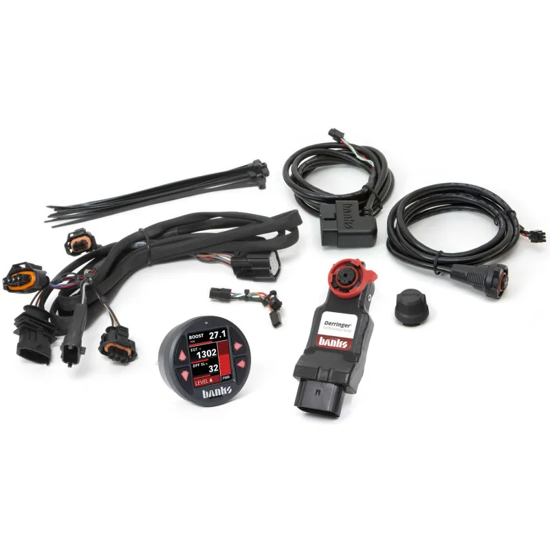 Stops the competition dead in their tracks. Six years of engine and chassis dyno experience developing and selling this engine for military use results in our torque and power gains across the full operating rpm range, starting right off idle and marching to the shift point in each gear. Derringer is dyno calibrated to use multiple data inputs just like your engine's ECU. So its microprocessor based electronics are able to actively and safely optimize calibrations in real time. Derringer has three switched settings: Stock, Plus and Sport. Sport produces Best in Class performance featuring Afterburner, a 10-second throttle actuated and EGT controlled boosting feature similar to our military Combat Power settings available only in the Sport setting. As a result, running Sport, the Derringer knocks a full second off your 0-60 time, 2.1 seconds off your 0-80 time and a full 4 seconds off 0-100 times. The Plus setting is for work use and has great mid-range feel. When running Plus with a loaded work truck and/or pulling a trailer, your on ramp merging speeds and passing times are greatly improved. The electronics are molded into a waterproof connector, which is easily concealed and communicates using B-Bus (Banks Bus) with other devices such as our iDash 1.8 Super Gauge/Control Center. The Derringer connects in line with the FRP (fuel rail pressure) and TMAP (intake manifold air temperature and pressure) sensors. But, unlike others it is also in line with the EGT (exhaust gas temperature) sensor and OBDII diagnostic bus connector. A CAN (controller area network) transceiver chip communicates with OBD or B-Bus allowing our microprocessors to talk with the vehicle. And, Derringer's special coolant temp watchdog prevents power addition when the engine is too cold or overheated. Maximum safe power is all automatic with a Derringer. We have a name for our new tuning methodology. It's exclusive in our new Derringer In-Line Tuners and it's called, "Adaptive Tuning".