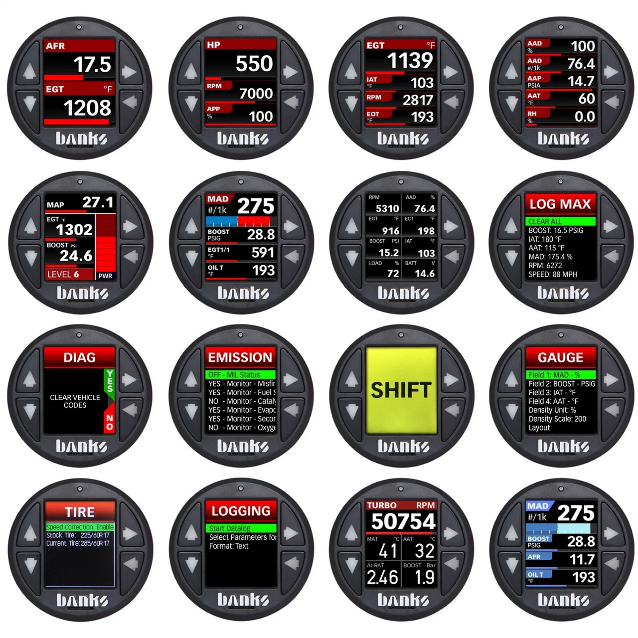 - iDash displays 5 customizable pages of 2-8 gauges per page