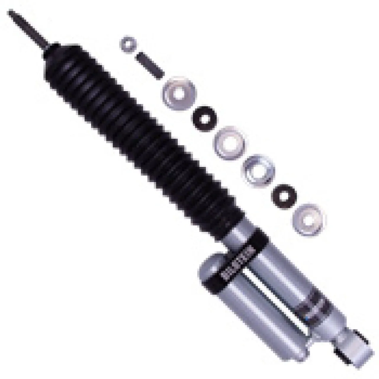 Bilstein B8 5160 remote reservoir shock absorbers are designed as a direct fit solution for lifted trucks and SUVs. The remote reservoir will offer increased cooling capacity and wheel travel to optimize overall performance compared to a traditional shock absorber. These shock absorbers feature a monotube design for consistent fade free performance and utilize velocity sensitive digressive valve settings which are tuned for each specific application. Each shock absorber is fitted with a unique 360 degree swivel banjo hose fitting and an attractive billet reservoir mount where applicable providing a clean, low profile installation. B8 5160 remote reservoir shock absorbers will increase overall durability of your vehicle allowing you to conquer the harshest of off-road environments.
