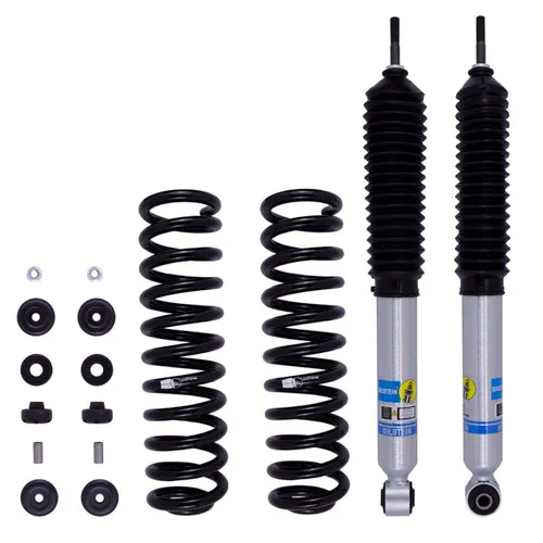 Bilstein B8 5112 suspension kit is a high performance leveling kit which provides more ground clearance, allows for larger tires, and increases wheel travel. The Bilstein B8 5162 suspension kit is for front applications and consists of (2) B8 5100 shock absorbers combined with (2) matched coil springs. This simple yet effective kit will bolt into the factory locations with no modifications. The Bilstein B8 5112 suspension kit provides a smooth and stable ride both on and off-road.