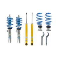 The Bilstein B14 (PSS) suspension kit features both coilover and standard monotube gas shocks with performance-level valving, with application specific, progressive rate coil springs. The solid aluminum spring seat and lock nut allows for precise adjustment of the vehicle's lowered ride height from 30mm to 50mm, even while installed. Bilstein's patented Triple-C-Technology coating ensures long-lasting resistance to corrosion. The B14 (PSS) suspension kit is ideal for the driver looking to set a car's ride height for both looks and improved handling.