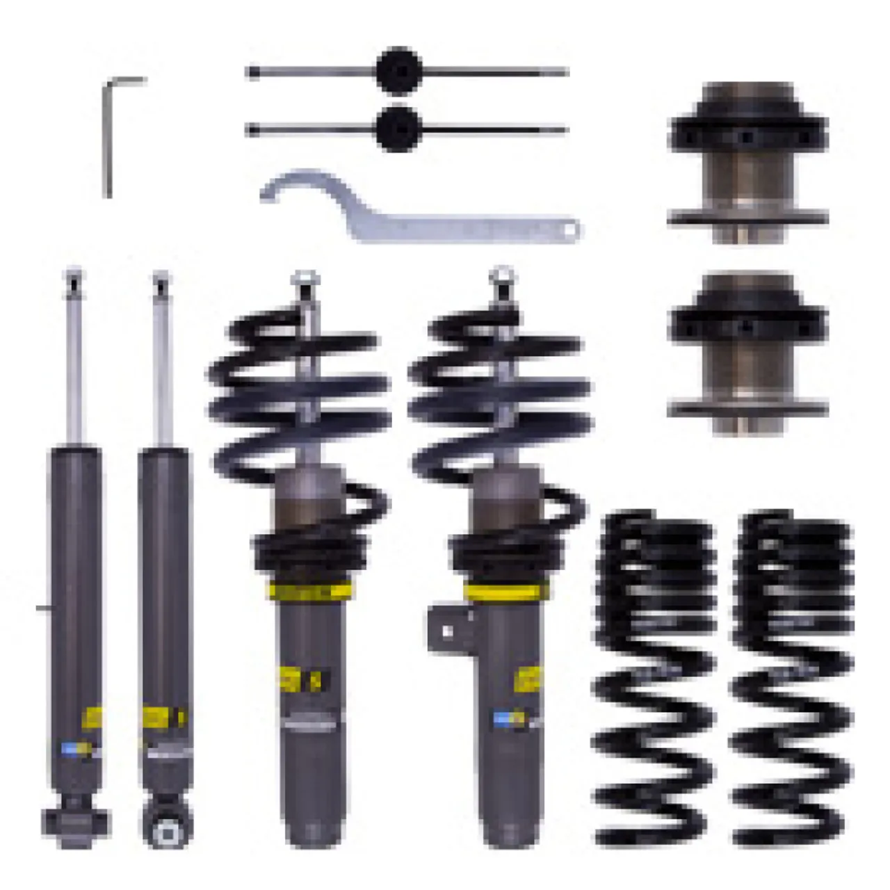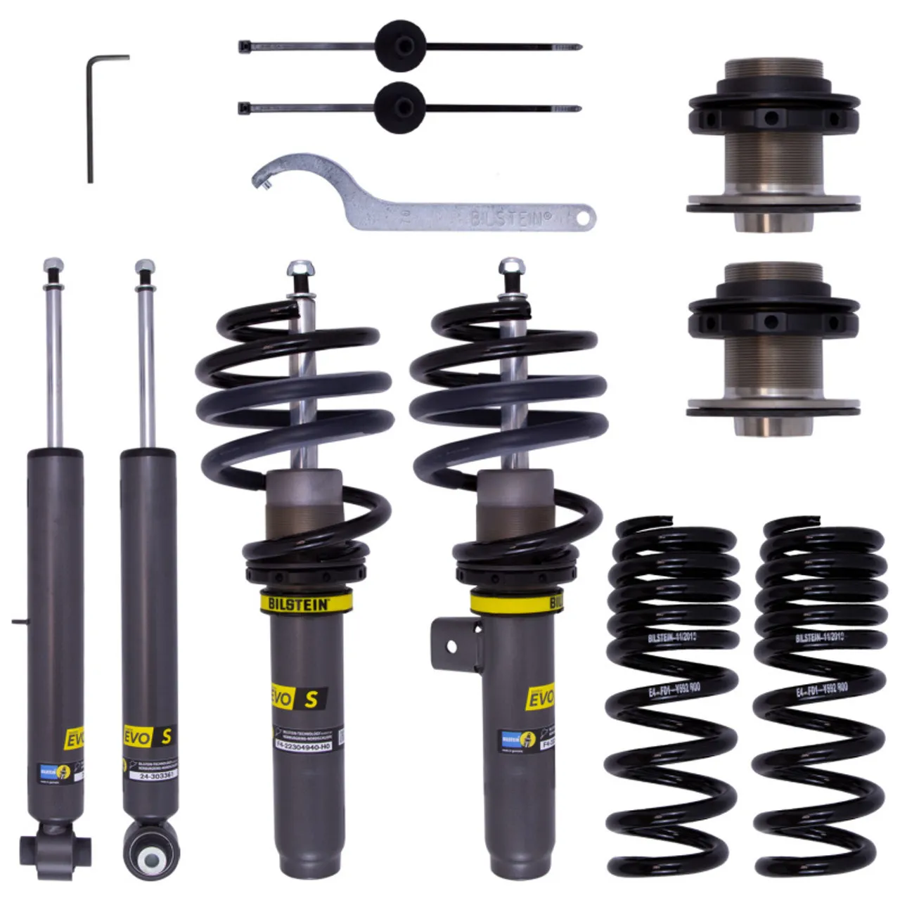 Bilstein EVO Series coilovers are the next step in the evolution of performance suspension tuning. EVO S is a coilover kit built and tuned specifically for everyday street use. Featuring ride height adjustability in an OE quality, direct fit package. Redesigned threaded bodied dampers allow for extreme lowering of up to 70mm. High quality components ensure longevity through every day use while providing a sportier look. Improved handling and ride comfort are achieved through specific application tuning. Bilstein EVO Series suspension kits are designed and built in Germany with technology tested and tuned on the Nürburgring.