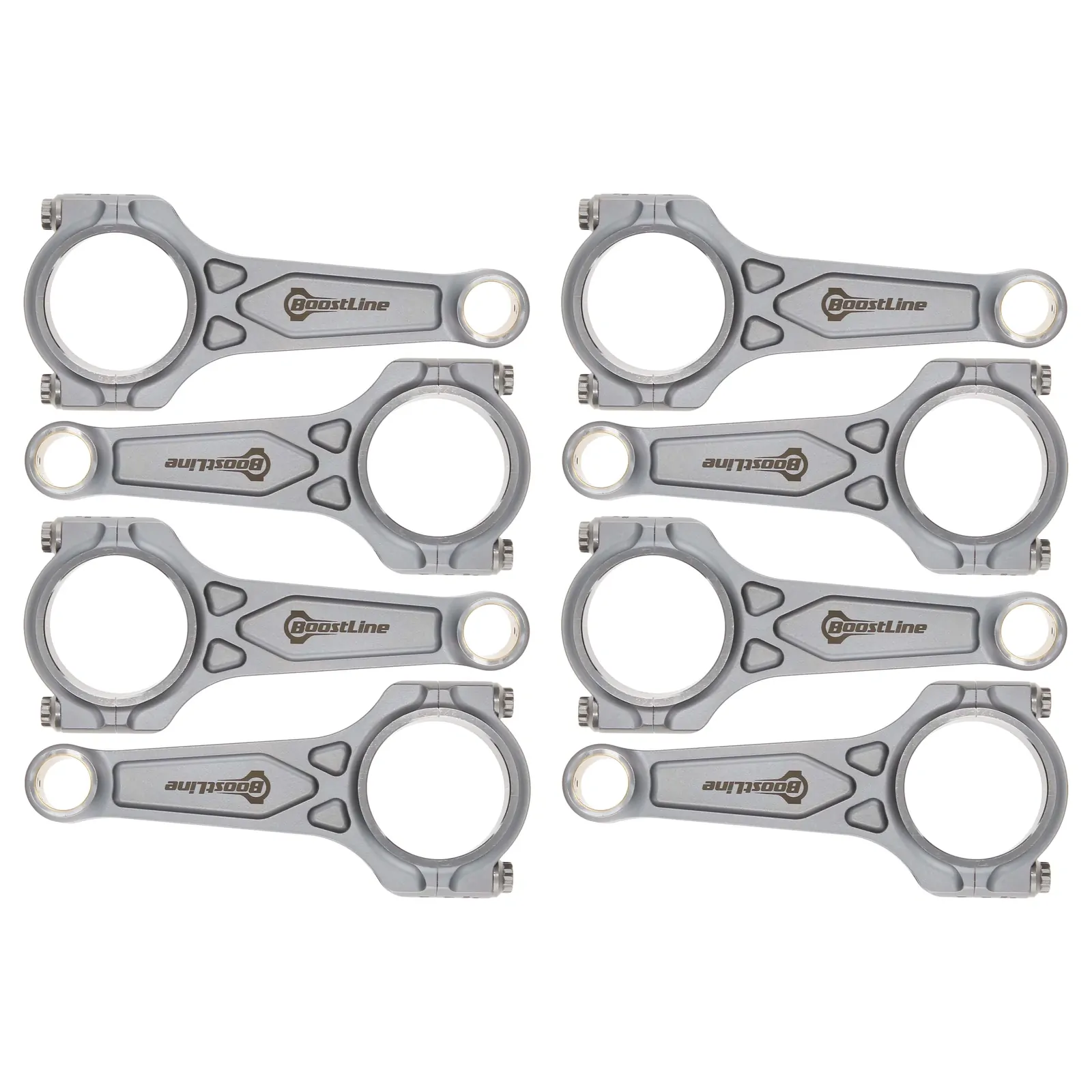 Boostline Ford Modular 4.6L Connecting Rod Set, 5.933 in. Length, 0.866 in. Pin, 2.100 in. Journal, 7/16 in. ARP 2000 Bolts, 4340 Steel, Patented Three-Pocket Design, Set of 8.