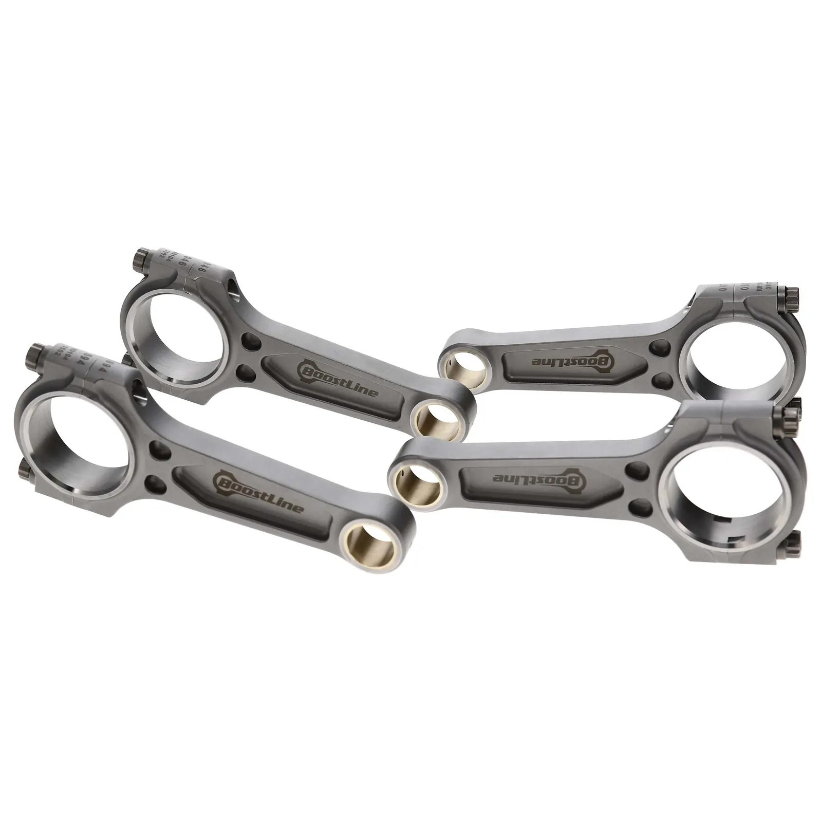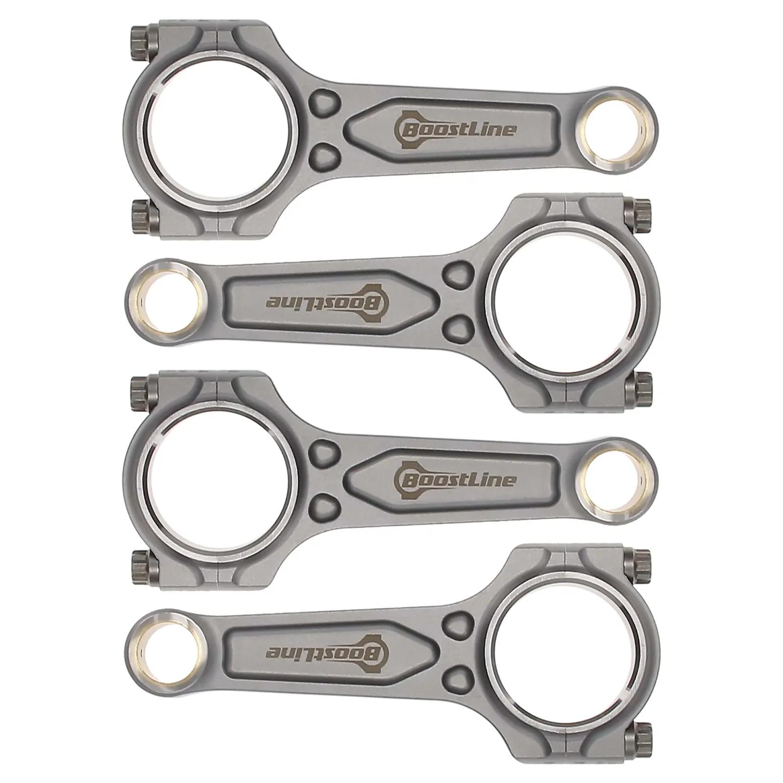 Boostline Honda B Series Connecting Rod Set, 138.00 mm Length, 21.00 mm Pin, 45.00 mm Journal, 3/8 in. ARP 2000 Bolts, 4340 Steel, Patented Three-Pocket Design, Set of 4.