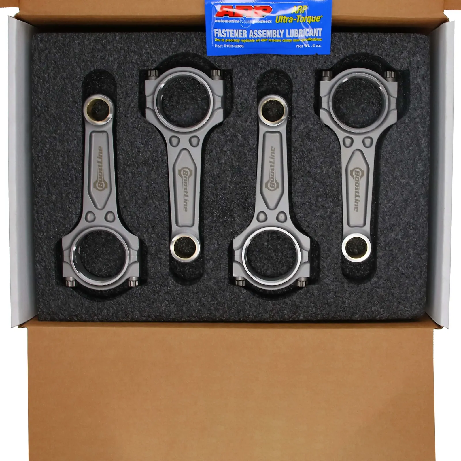 BoostLine connecting rods are designed and built for the stressful demands of high-powered, forced induction and nitrous engines. Whether you're building a boosted K-series, a track-ready Volkswagen, or a sneaky SRT4, BoostLine connecting rods have been proven in import and domestic four-cylinder engines confidently pushing 1,000HP+. BoostLine rods are forged from premium 4340 steel and utilize a patented, three-pocket design, maximizing strength while minimizing rotating weight. This revolutionary design dramatically improves each rods' big-end stability under tensile loads and provides a 60% improvement in bending strength and 20% stress reduction in tension compared to H-beam designs, benefits crucial to durability in four-digit-horsepower engines. Each rod is equipped standard with industry leading ARP hardware and is subject to a 26-point, CMM inspection with all critical dimensions provided via an inspection card included with every set of rods. BoostLine connecting rods are the complete package for every performance build, from powerful projects to all-out race cars.