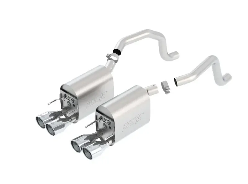 The S-Type II systems use the latest muffler design to eliminate sound frequencies are often associated with resonance or drone. This system will fit vehicles with and without NPP. BORLA system does NOT include NPP valves. System features 4" polished T-304 stainless steel tips. BORLA Cat-Back & Axle-Back exhaust systems feature patented straight-through and multi-core technology to unleash hidden horsepower. Increased exhaust velocity adds power, driving excitement, fuel economy, and the distinctive BORLA Sound of Power respected by motoring enthusiasts everywhere.