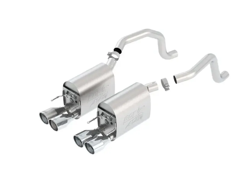 This system will fit vehicles with and without NPP. BORLA system does NOT include NPP valves. System features 4" polished T-304 stainless steel tips. ATAK, Acoustically-Tuned Applied Kinetics, technology is based on specifically-tuned attributes of the internal muffler cores, which are calibrated on a vehicle-by-vehicle basis to deliver the most desirable sound. This is our most aggressive sound for the C6 Corvette. Even though the sound on the exterior is uncompromising, the sound in the cabin is devoid of harsh resonance, a product of painstaking engineering and over 40 years of experience.