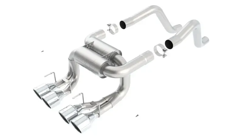 This system will fit vehicles with and without NPP. BORLA system does NOT include NPP valves. System features 4.25" polished T-304 stainless steel tips. ATAK, Acoustically-Tuned Applied Kinetics, technology is based on specifically-tuned attributes of the internal muffler cores, which are calibrated on a vehicle-by-vehicle basis to deliver the most desirable sound. This is our most aggressive sound or the C6 Corvette. Even though the sound on the exterior is uncompromising, the sound in the cabin is devoid of harsh resonance, a product of painstaking engineering and over 40 years of experience.
