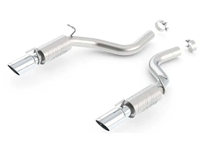 System features the ATAK sound level. ATAK, Acoustically-Tuned Applied Kinetics, technology is based on specifically-tuned attributes of the internal muffler cores, which are calibrated on a vehicle-by-vehicle basis to deliver the most desirable sound. This is our most aggressive sound. Even though the sound on the exterior is uncompromising, the sound in the cabin is devoid of harsh resonance, a product of painstaking engineering and over 40 years of experience. BORLA systems unleash hidden horsepower. Increased exhaust velocity adds power, driving excitement, fuel economy, and the distinctive BORLA Sound of Power respected by motoring enthusiasts everywhere. The system exits through 4.5" bright chrome on T-304 stainless steel tips.