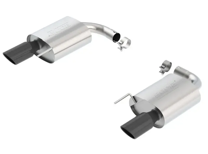 This system features a 4" black chrome on T-304 stainless steel tips. Using BORLA Stainless Steel Polish p# 21461 is NOT recommended with these black chrome tips. We suggest cleaning the tips with hot water and a microfiber cloth. BORLA Cat-Back and Axle-Back exhaust systems feature patented straight-through and multi-core technology designed to unleash hidden horsepower. Increased exhaust velocity adds power, driving excitement, fuel economy, and the distinctive BORLA Sound of Power respected by motoring enthusiasts everywhere.