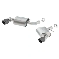 This system features the classic S-Type sound and is designed for vehicles that come from the factory with single tips and are NOT equipped with Dual Mode Exhaust (NPP) valves. It features unique BORLA 4.5" carbon fiber tips with black anodized centers. Systems with polished T-304 stainless steel tips and black coated T-304 stainless steel tips are also available. BORLA Cat-Back & Axle-Back exhaust systems feature patented straight-through and multi-core technology to unleash hidden horsepower. Increased exhaust velocity adds power, driving excitement, fuel economy, and the distinctive BORLA Sound of Power respected by motoring enthusiasts everywhere.