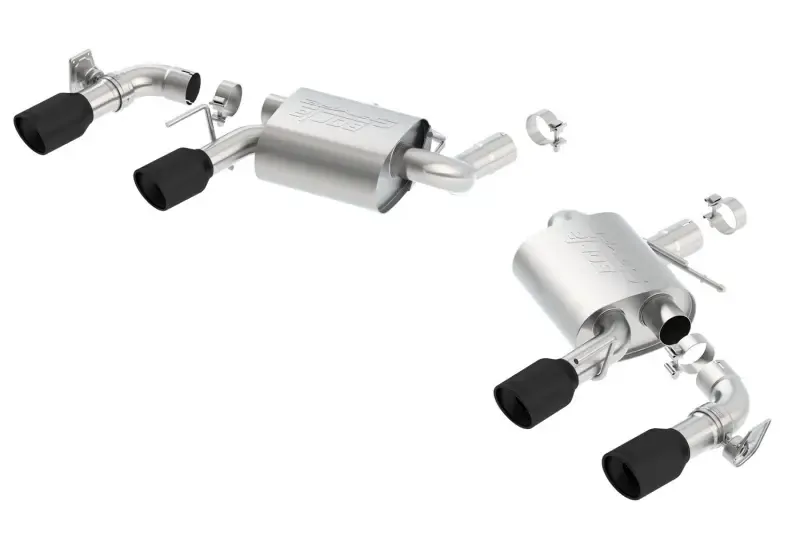 This system features the classic S-Type sound and is designed for vehicles equipped with Dual Tips and Dual Mode Exhaust (NPP) valves. Features high-temperature ceramic black on 4" T-304 stainless steel tips. Systems with polished T-304 stainless steel tips and carbon fiber tips are also available. BORLA Cat-Back & Axle-Back exhaust systems feature patented straight-through and multi-core technology to unleash hidden horsepower. Increased exhaust velocity adds power, driving excitement, fuel economy, and the distinctive BORLA Sound of Power respected by motoring enthusiasts everywhere.