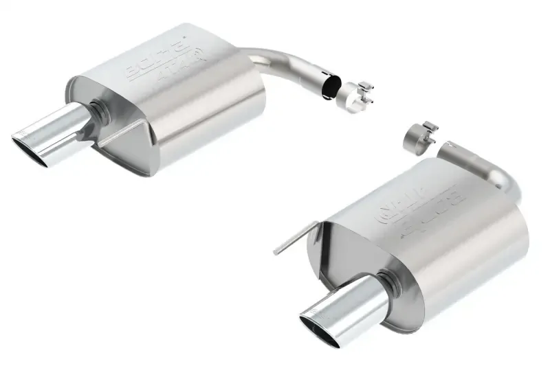 BORLA has announced the development of a revolutionary new exhaust technology that enables their engineers to deliver unprecedented vehicle-specific control over the acoustical note of an exhaust throughout the RPM range, while retaining 100% of the power-adding capabilities of BORLAs patented Multicore design. Called ATAK (Acoustically-Tuned Applied Kinetics), this exclusive technology (U.S. patent #5,248,859) produces the highest available dB (decibel) levels in the BORLA street-legal lineup, and is designed for high-performance purists who prefer exhaust notes over their stereos. The focus of ATAK is to pump the volume while retaining clarity of sound, at the same time avoiding the drone and distortion typically found in louder exhausts. With ATAK, the sound output is tuned like a graphic equalizer to shape and focus sound waves for optimum high-volume output. The development of each ATAK system begins with extensive study of each vehicles acoustical properties. The technology is based on custom-tuned attributes of the internal muffler cores, which are calibrated on a vehicle-by-vehicle basis to deliver the most desirable sound. BORLA is now shipping Cat-Back and/or Rear Section ATAK exhaust systems for a wide variety of popular applications. Like all BORLA exhaust products, each system is handmade in the USA by master craftspeople and features premium 300-Series austenitic stainless steel construction, mandrel bending by computer-controlled CNC machinery to ensure maximum flow and a perfect fit, mirror-polished tips, and a Million-Mile Warranty
