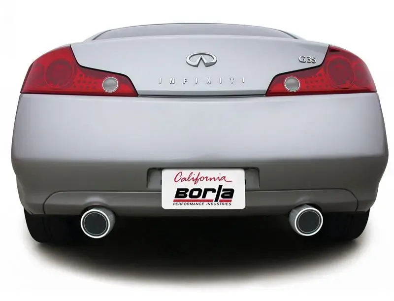 BORLA‘S race-bred technology has been transferred from many years of successful race programs, learning to make it light, make it last and make it perform, making BORLA a natural for the Infiniti G35 -- great power, super lightweight while being ultra brawny stainless steel, sexy powerful look and a great strong sound. All you‘ve come to expect from BORLA the most winning exhaust in racing.