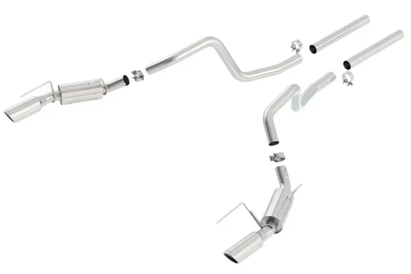 BORLA experience and advance engineering have produced a sexy "S-Type" exhaust with outstanding flow numbers that generate great power enhancements. These attributes, coupled with an aggressive sound of power and awesome big 4" bright chrome on T-304 stainless steel tips, proclaim this Stang is all business. Airflow management and exhaust engineering is a science with which BORLA has more experience than anyone in the exhaust aftermarket. The performance matches the famous BORLA systems of the past but with a unique muffler and exhaust configuration canceling additional high frequency sound waves.