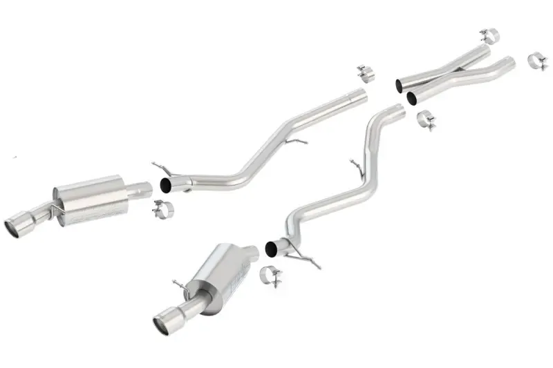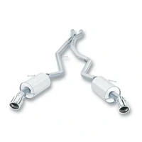 BORLA Type-S / Type-S II Cat-Back & Rear Section exhaust systems feature patented straight-through and multi-core technology to unleash hidden horsepower. Increased exhaust velocity adds power, driving excitement, fuel economy, and a distinctive more aggressive sounding S-Type sound - respected by motoring enthusiasts everywhere. From the design characteristics of the inner cores to the amount of sound-absorbing composite filament, all specifications of BORLA exhaust systems are tuned on a vehicle-by-vehicle basis for an optimum blend of performance and sound. Each system is built from premium 300-series austenitic stainless steel, superior to T-400 series knockoffs (such as 409), to give you the absolute best in performance and durability. Ultra-smooth mandrel bends ensure maximum flow & power, and precision computer-controlled CNC manufacturing ensures an accurate fit. Best of all, BORLA stands behind every system with a Million-Mile Warranty. Just what youd expect from the worlds most experienced (and most winning) exhaust brand.