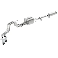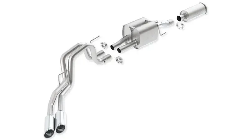 Replaces factory front muffler (resonator). Features polished T-304 stainless steel tips. Borla Cat-Back & Axle-Back exhaust systems feature patented straight-through and multi-core technology designed to unleash hidden horsepower. Increased exhaust velocity adds power, driving excitement, fuel economy, and the distinctive Borla Sound of Power respected by motoring enthusiasts everywhere. Each system is built from premium T-304 stainless steel, superior to T-400 series knockoffs (such as 409), to give you the absolute best in performance and durability. Ultra-smooth mandrel bends ensure maximum flow & power, and precision computer-controlled CNC manufacturing ensures an accurate fit. Best of all, Borla stands behind every system with a Million-Mile Warranty. Just what you'd expect from the world's most experienced (and most winning) exhaust brand.
