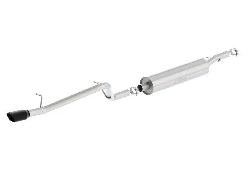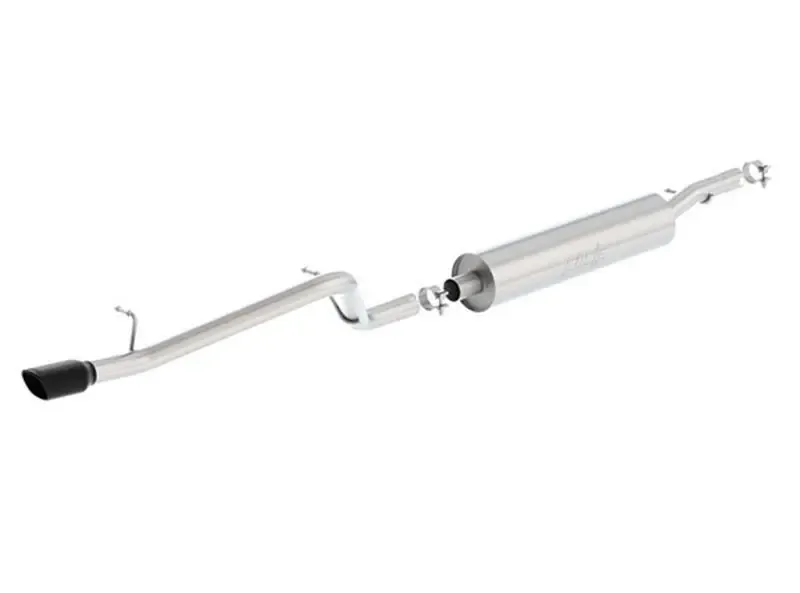 This system features a 3.5 x 3.28" black chrome on T-304 stainless steel tip. Using BORLA Stainless Steel Polish p# 21461 is NOT recommended with these black chrome tips. We suggest cleaning the tips with hot water and a microfiber cloth. BORLA Cat-Back and Axle-Back exhaust systems feature patented straight-through and multi-core technology designed to unleash hidden horsepower. Increased exhaust velocity adds power, driving excitement, fuel economy, and the distinctive BORLA Sound of Power respected by motoring enthusiasts everywhere.