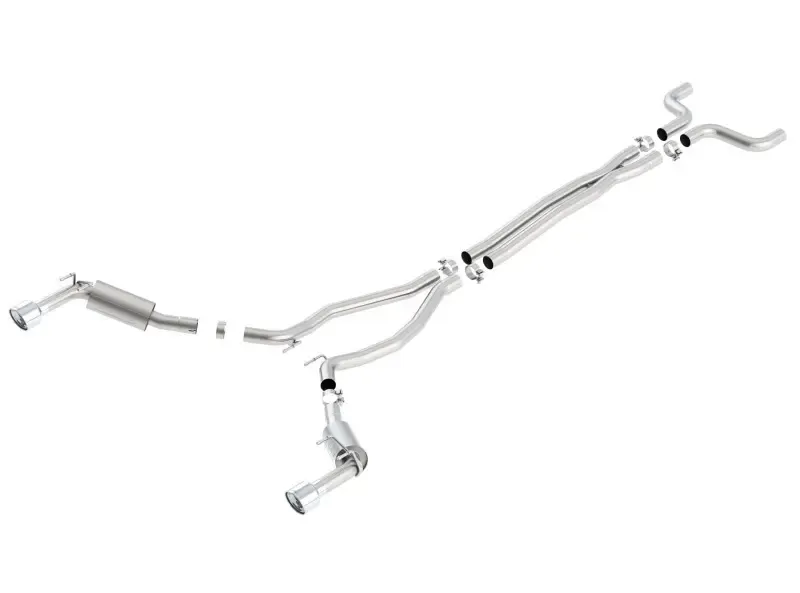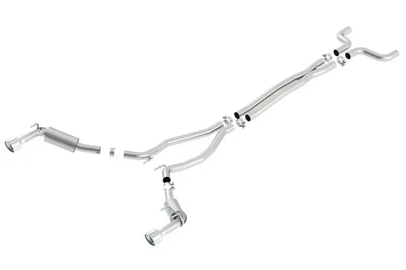 Fits vehicles WITHOUT the factory Ground Effects package. System features a merge X-Pipe for increased performance and improved sound. System has 4.5" polished T-304 stainless steel tips. BORLA Cat-Back and Axle-Back exhaust systems feature patented straight-through and multi-core technology designed to unleash hidden horsepower. Increased exhaust velocity adds power, driving excitement, fuel economy, and the distinctive BORLA Sound of Power respected by motoring enthusiasts everywhere.