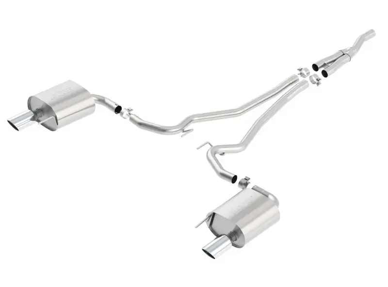 EXCEPT Convertible and Active Valve Exhaust System (4 tips). Features 4" bright chrome on T-304 stainless steel tips. BORLA Cat-Back and Axle-Back exhaust systems feature patented straight-through and multi-core technology is designed to unleash hidden horsepower. Increased exhaust velocity adds power, driving excitement, fuel economy, and the distinctive BORLA Sound of Power respected by motoring enthusiasts everywhere.
