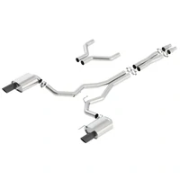 EXCEPT Convertible. Recommended only for vehicles with substantial engine upgrades that require a 3" exhaust. System contains a merge X-Pipe for increased performance and improved sound. This system features the aggressive ATAK sound and exits through 4" black chrome on T-304 stainless steel tips. Using BORLA Stainless Steel Polish p# 21461 is not recommended with these black chrome tips. We suggest cleaning the tips with hot water and a microfiber cloth. BORLA Cat-Back and Axle-Back exhaust systems feature patented straight-through and multi-core technology designed to unleash hidden horsepower. Increased exhaust velocity adds power, driving excitement, fuel economy, and the distinctive BORLA Sound of Power respected by motoring enthusiasts everywhere.