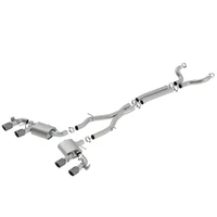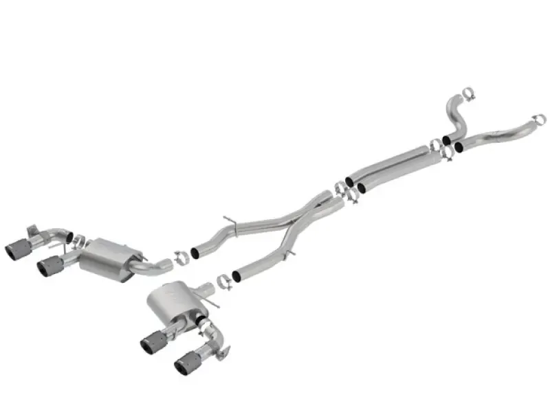 O.E. system NEEDS to be cut to install BORLA system. This system has Dual Mode NPP valves and is specifically tuned for the ZL1 Camaro. It features an X-Pipe for improved performance, the S-Type sound level, and 4" Carbon Fiber tips with black anodized centers. A system with polished T-304 stainless steel tips is also available. BORLA Cat-Back and Axle-Back exhaust systems feature patented straight-through and multi-core technology designed to unleash hidden horsepower. Increased exhaust velocity adds power, driving excitement, fuel economy, and the distinctive BORLA Sound of Power respected by motoring enthusiasts everywhere.