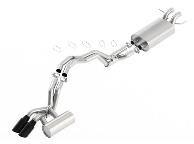 This system features a black chrome finish on T-304 stainless steel tips. BORLA(r) Cat-Back(tm) & Axle-Back exhaust systems feature patented straight-through and multi-core technology designed to unleash hidden horsepower. Increased exhaust velocity adds power, driving excitement, fuel economy, and the distinctive BORLA(r) Sound of Power respected by motoring enthusiasts everywhere. Each system is built from premium T-304 stainless steel, superior to T-400 series knockoffs (such as 409), to give you the absolute best in performance and durability. Ultra-smooth mandrel bends ensure maximum flow & power, and precision computer numerical control (CNC) manufacturing ensures an accurate fit. Best of all, BORLA(r) stands behind every system with a Million-Mile Warranty. Just what you'd expect from the world's most experienced (and most winning) exhaust brand.