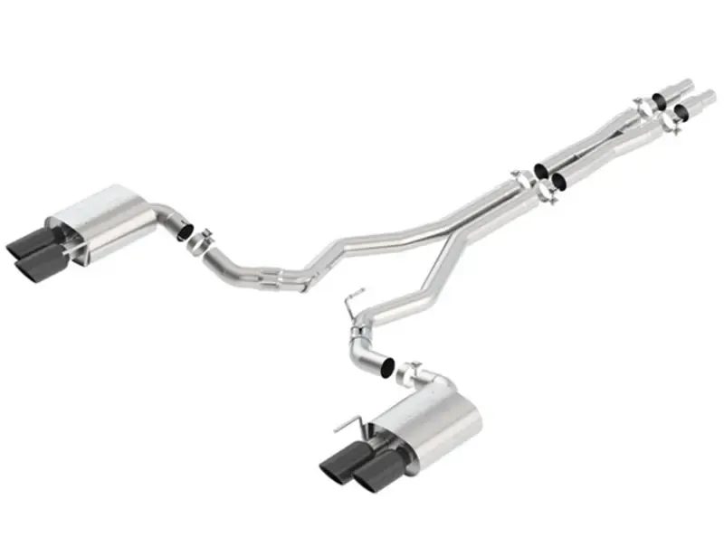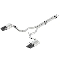 WITHOUT Active Valve Exhaust. NOT recommended for use on Convertibles. 3" diameter system. System contains a merge X-Pipe for increased performance and improved sound. System features BORLA's Polyphonic Harmonizer Technology which utilizes patented units that contain pipes of different diameters and lengths to create multiple exhaust notes that harmonize to deliver a clean, rich, full-bodied sound to the BORLA mufflers. The mufflers then enhance this sound to the character and volume appropriate for our Touring, S-Type and ATAK systems. This system also features 4" black chrome on T-304 stainless steel tips. Using BORLA Stainless Steel Polish p# 21461 is NOT recommended with these black chrome tips. We suggest cleaning the tips with hot water and a microfiber cloth.