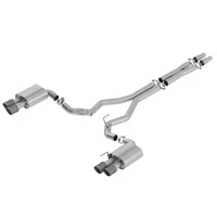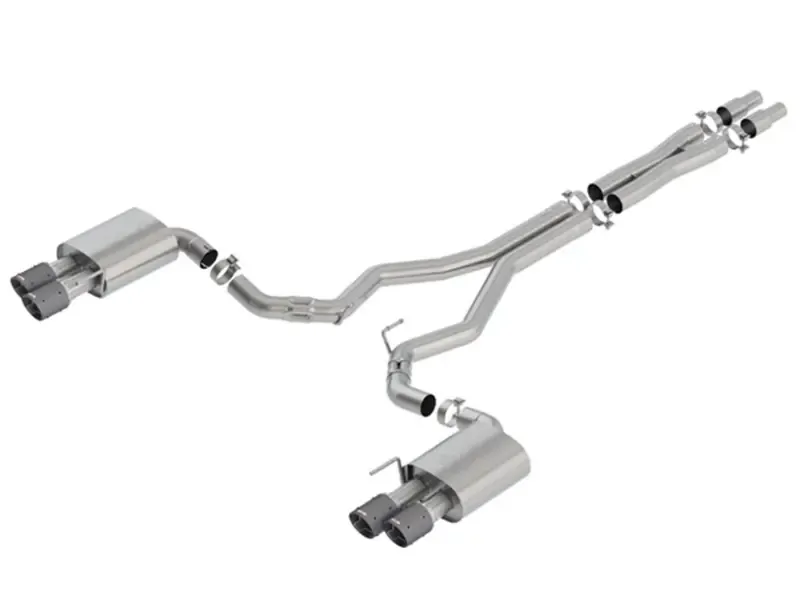 WITHOUT Active Valve Exhaust. NOT recommended for use on Convertibles. 3" diameter system. System contains a merge X-Pipe for increased performance and improved sound. System features BORLA's Polyphonic Harmonizer Technology which utilizes patented units that contain pipes of different diameters and lengths to create multiple exhaust notes that harmonize to deliver a clean, rich, full-bodied sound to the BORLA mufflers. The mufflers then enhance this sound to the character and volume appropriate for our Touring, S-Type and ATAK systems. System also features 4" carbon fiber tips with bright centers.
