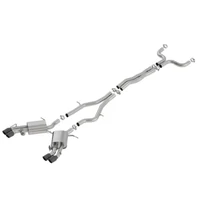 This system features 3.5" black chrome on T-304 stainless steel tips. Using BORLA Stainless Steel Polish p# 21461 is NOT recommended with these black chrome tips. We suggest cleaning the tips with hot water and a microfiber cloth. System contains a Merge X-Pipe. BORLA Cat-Back and Axle-Back exhaust systems feature patented straight-through and multi-core technology designed to unleash hidden horsepower. Increased exhaust velocity adds power, driving excitement, fuel economy, and the distinctive BORLA Sound of Power respected by motoring enthusiasts everywhere.