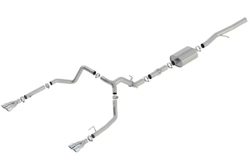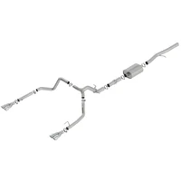EXCEPT ZR2 & AT4X models. Factory Split Rear Exit ONLY. This system features bright chrome on T-304 stainless steel tips. Add Adapter 60706 for Crew Cab with Standard Bed (6' 7") 157" Wheelbase vehicles. System features BORLA(r)'s aggressive ATAK(r) muffler and Polyphonic Harmonizer Technology which utilizes patented units that contain pipes of different diameters and lengths to create multiple exhaust notes that harmonize to deliver a clean, rich, full-bodied sound. Replace the Polyphonic Harmonizer behind the muffler in the ATAK(r) system with muffler 60679 to attain the "S-Type" sound level (quieter than ATAK(r)). BORLA(r) Cat-Back(tm) & Axle-Back exhaust systems feature patented straight-through and multi-core technology designed to unleash hidden horsepower. Increased exhaust velocity adds power, driving excitement, fuel economy, and the distinctive BORLA(r) Sound of Power respected by motoring enthusiasts everywhere. Each system is built from premium T-304 stainless steel, superior to T-400 series knockoffs (such as 409), to give you the absolute best in performance and durability. Ultra-smooth mandrel bends ensure maximum flow & power, and precision computer numerical control (CNC) manufacturing ensures an accurate fit. Best of all, BORLA(r) stands behind every system with a Million-Mile Warranty. Just what you'd expect from the world's most experienced (and most winning) exhaust brand.