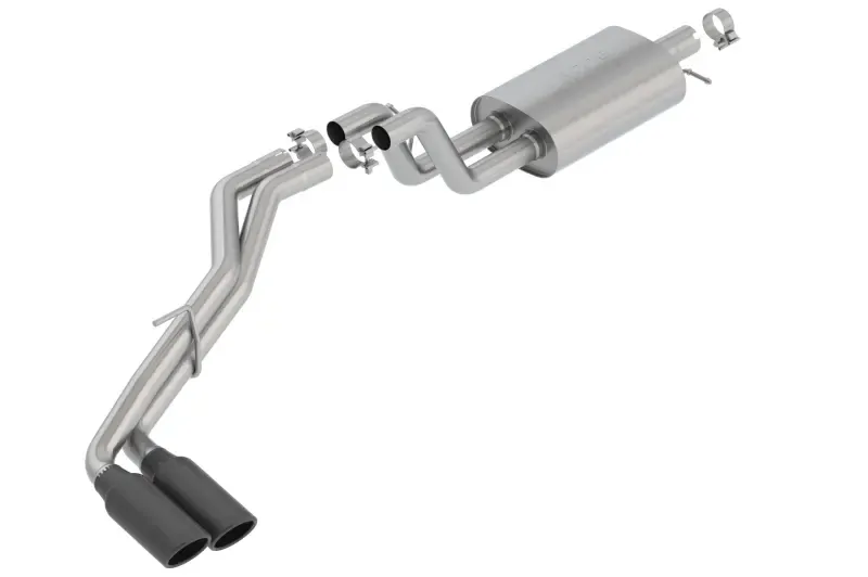 This system features 4" black chrome on T-304 stainless steel tips. Using BORLA(r) Stainless Steel Polish p# 21461 is NOT recommended with these black chrome tips. We suggest cleaning the tips with hot water and a microfiber cloth. BORLA(r) Cat-Back(tm) Axle-Back exhaust systems feature patented straight-through and multi-core technology designed to unleash hidden horsepower. Increased exhaust velocity adds power, driving excitement, fuel economy, and the distinctive BORLA(r) Sound of Power respected by motoring enthusiasts everywhere. Each system is built from premium T-304 stainless steel, superior to T-400 series knockoffs (such as 409), to give you the absolute best in performance and durability. Ultra-smooth mandrel bends ensure maximum flow& power, and precision computer numerical control (CNC) manufacturing ensures an accurate fit. Best of all, BORLA(r) stands behind every system with a Million-Mile Warranty. Just what you'd expect from the world's most experienced (and most winning) exhaust brand.