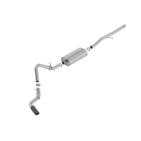Factory Single Side Exit vehicles ONLY. Add Adapter 60708 for Crew Cab with Standard Bed (6' 7") 157" Wheelbase vehicles. The 140793BC Cat-Back(tm) system by BORLA(r) is a side exit system featuring the mellow Touring sound level and a 4" black chrome on T-304 stainless steel tip. A bright chrome on T-304 stainless steel tip is also available. Using BORLA(r) Stainless Steel Polish p# 21461 is NOT recommended with these black chrome tips. We suggest cleaning the tips with hot water and a microfiber cloth. Add Adapter 60706 For Crew Cab with Standard Bed (6' 7") 157" Wheelbase vehicles. BORLA(r) Cat-Back(tm) and Axle-Back exhaust systems feature patented straight-through and multi-core technology designed to unleash hidden horsepower. Increased exhaust velocity adds power, driving excitement, fuel economy, and the distinctive BORLA(r) Sound of Power respected by motoring enthusiasts everywhere. Each system is built from premium, high-quality T-304 austenitic stainless steel, superior to T-400 to give you the absolute best in performance and durability. Ultra-smooth mandrel bends ensure maximum flow & power, and precision CNC manufacturing ensures an accurate fit. You can count on BORLA(r) to provide durability, performance, sound, and a Million-Mile Warranty. See separate note about warranty on tip finish.