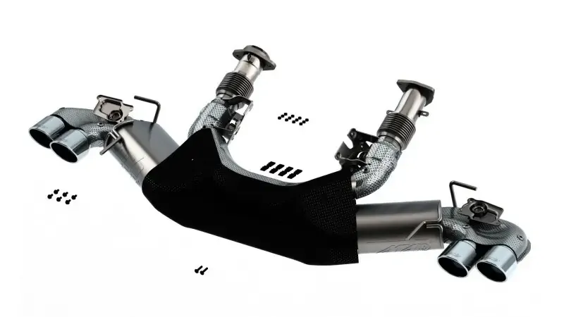Developing systems for the C8 Corvette presented BORLA engineers with unique challenges, but our team was up to the challenge. Great care was taken to ensure the integrity and function of the system as well as the vehicle itself. This Cat-Back system includes both AFM ('20-'21)/ DFM ('22-'24) valves and NPP dual mode exhaust valves. It features the ATAK sound level, our most aggressive sound. It provides a more exciting driving experience without any drone. It features our Polyphonic Harmonizer and SwitchFire technology. BORLA'S Polyphonic Harmonizer Technology utilizes patented units that contain pipes of different diameters and lengths to create multiple exhaust notes that harmonize to deliver a clean, rich, full-bodied sound. Completely eliminating the turbulent center intersection of a standard X-Pipe, BORLA'S patented SwitchFire design truly blends the combustion pulses from both sides of the engine for improved performance and a custom sound.