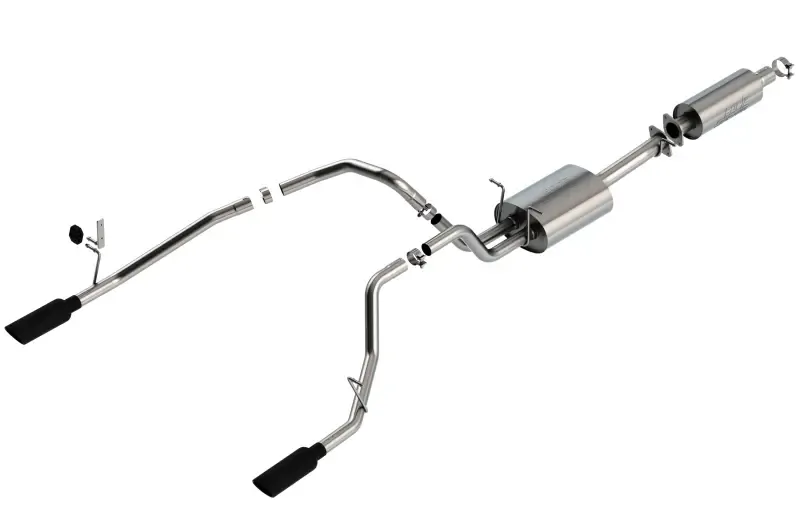 Coverage includes Rebel models. Does NOT fit Ram Classic models. The BORLA(r) team presents their exhaust systems for the RAM 1500 V6. These Cat-Back(tm) exhaust systems have been developed with performance and sound in mind for the 3.6L Pentastar-equipped RAM 1500 trucks. Our S-Type sound level will provide a more aggressive exhaust tone and volume without adding any cabin drone. This system is designed to convert your Original Equipment single system to a dual outlet system. This system features a split rear exit with 4" black chrome on T-304 stainless steel tips. Tips exit Under the Bumper. Using BORLA(r) Stainless Steel Polish p# 21461 is NOT recommended with these black chrome tips. We suggest cleaning the tips with hot water and a microfiber cloth. Ultra-smooth mandrel bends ensure maximum flow & power, and precision computer numerical control (CNC) manufacturing ensures an accurate fit. Optional resonator 60716 can be added to the system to dampen the sound level. A rugged truck needs a more durable exhaust system, bolt on a BORLA(r). All Borla(r) Cat-Back(tm) and Axle-Back systems are made in the USA and are covered by our Million-Mile warranty.