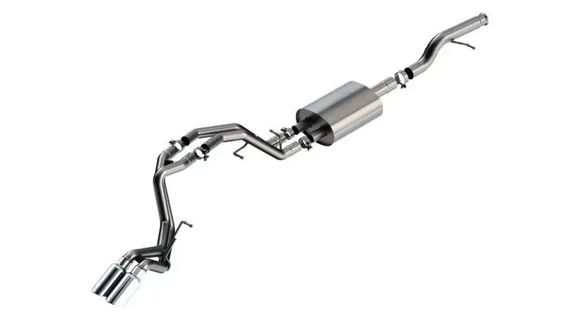 Features 4" bright chrome on T-304 stainless steel tips. Black chrome on T-304 stainless steel tips are also available. BORLA(r) Cat-Back(tm) and Axle-Back exhaust systems feature patented straight-through and multi-core technology designed to unleash hidden horsepower. Increased exhaust velocity adds power, driving excitement, fuel economy, and the distinctive BORLA(r) Sound of Power respected by motoring enthusiasts everywhere. Each system is built from premium T-304 stainless steel, superior to T-400 series knockoffs (such as 409), to give you the absolute best in performance and durability. Ultra-smooth mandrel bends ensure maximum flow & power, and precision computer-controlled CNC manufacturing ensures an accurate fit. Best of all, BORLA(r) stands behind every system with a Million-Mile Warranty. Just what you'd expect from the world's most experienced (and most winning) exhaust brand.