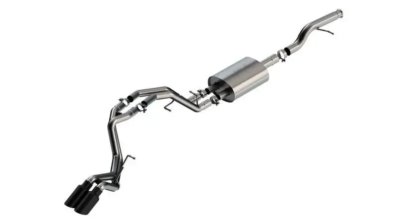 Features 4" black chrome on T-304 stainless steel tips. Using BORLA(r) Stainless Steel Polish p# 21461 is NOT recommended with these black chrome tips. We suggest cleaning the tips with hot water and a microfiber cloth. Bright chrome on T-304 stainless steel tips are also available. BORLA(r) Cat-Back(tm) and Axle-Back exhaust systems feature patented straight-through and multi-core technology designed to unleash hidden horsepower. Increased exhaust velocity adds power, driving excitement, fuel economy, and the distinctive BORLA(r) Sound of Power respected by motoring enthusiasts everywhere. Each system is built from premium T-304 stainless steel, superior to T-400 series knockoffs (such as 409), to give you the absolute best in performance and durability. Ultra-smooth mandrel bends ensure maximum flow & power, and precision computer-controlled CNC manufacturing ensures an accurate fit. Best of all, BORLA(r) stands behind every system with a Million-Mile Warranty. Just what you'd expect from the world's most experienced (and most winning) exhaust brand.