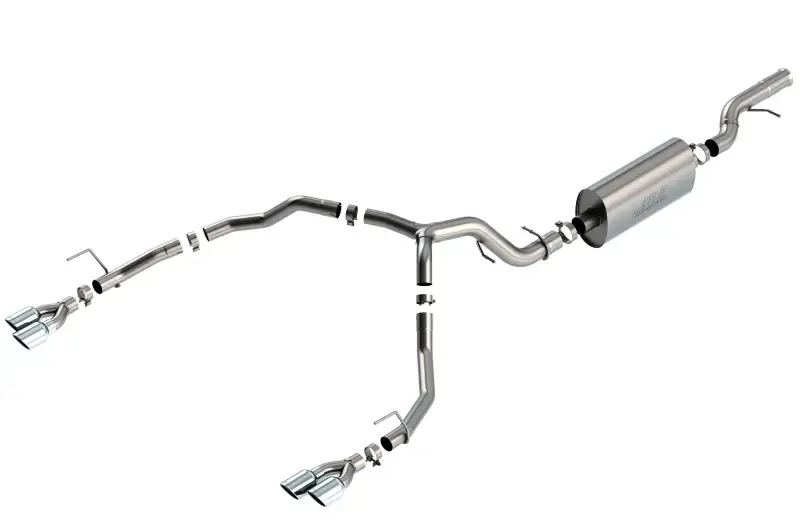 This BORLA(r) Cat-Back(tm) system was specifically designed to enhance the power and sound of the Chevrolet Tahoe and GMC Yukon equipped with the 6.2L engine. This system features the mellow Touring sound with no drone inside the vehicle. Split rear exit with dual 4" bright chrome on T-304 stainless steel tips on each side provide a custom appearance. Increased exhaust velocity adds power, driving excitement, fuel economy, and the distinctive BORLA(r) Sound of Power respected by motoring enthusiasts everywhere. Each system is built from premium T-304 stainless steel, superior to T-400 series knockoffs (such as 409), to give you the absolute best in performance and durability. Ultra-smooth mandrel bends ensure maximum flow & power, and precision computer-controlled CNC manufacturing ensures an accurate fit. Best of all, BORLA(r) stands behind every system with a Million-Mile Warranty. Just what you'd expect from the world's most experienced (and most winning) exhaust brand.