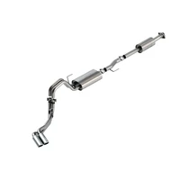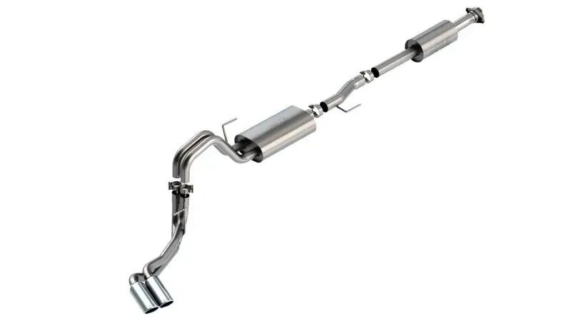 The BORLA Cat-Back system 140880 was specifically designed to enhance the power and sound of the Ford F-150 equipped with 3.3L engine. It includes 4" bright chrome on T-304 stainless steel tips and a dual side exit configuration. The entire system is made of T-304 stainless steel and utilizes computer numerical control (CNC) manufacturing techniques that ensure an accurate fit. This system features the S-Type sound that gives you an aggressive sound with no drone. It is also available with black chromed tips (part number 140880BC). There are also systems available for the 3.3L F-150 that offer different options for sound level, tip finish and tip exits. Add adapter 60556 for Crew Cab with Standard Bed (6' 7") 157.2" Wheelbase vehicles. Add adapter 60564 for Extended Cab Long Bed (8' 2") 164.1" Wheelbase vehicles. All this is backed by our unsurpassed Million Mile Warranty.System Features: Cat-Back System Dual Side Exit 4" Bright Chrome On T-304 Stainless Steel Tips S-Type Sound Level T-304 Stainless Steel Construction Bolt-On Installation Million Mile Warranty
