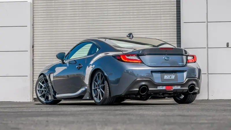 This BORLA Cat-Back system is tuned for performance and sound for the 2.4L engine in the BRZ and GR86. Our ATAK sound level is designed to bring out the Subaru engine growl and provides an aggressive sound without any drone. This system features 5" black chrome on T-304 stainless steel tips, but is also available with bright chrome on T-304 stainless steel tips. For ease of installation, this Cat-Back is a direct bolt on part and does not require cutting. Like all BORLA exhaust products, each system is handmade in the USA by master craftspeople and features premium, high-quality T-304 austenitic stainless steel construction. Ultra-smooth mandrel bends ensure maximum flow & power, and precision computer numerical control (CNC) manufacturing ensures an accurate fit. Best of all it features a Million-Mile Warranty.