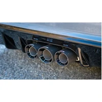 The BORLA Cat-Back system for the Civic Type R contains an Active Exhaust Valve that allow your vehicle to retain the factory designed valve operation. System also features BORLA's Polyphonic Harmonizer Technology which utilizes patented units that contain pipes of different diameters and lengths to create multiple exhaust notes that harmonize to deliver a clean, rich, full-bodied sound to the BORLA mufflers. The mufflers then enhance this sound to the character and volume appropriate to deliver the aggressive ATAK sound. System features 2) 4" and 1) 4.5" carbon fiber with black anodized center tips. Systems with polished T-304 stainless steel tips and black coated T-304 stainless steel tips are also available. Includes wiring harness extender for the Active Exhaust Valve Actuator.