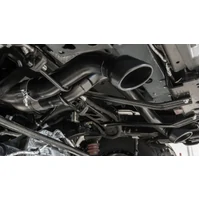 This 2.75" diameter system was designed specifically for the Bronco Raptor R 3.0L V6 Twin Turbo. The system features Active Exhaust Valves. Muffler contains an Internal H-Pipe. This system features the aggressive ATAK sound. BORLA's advanced muffler technology delivers great sound outside the vehicle with no drone or resonance inside the vehicle. It features 4" black coated T-304 stainless steel tips. The entire tail pipe assemblies are black coated. A system with 4" bright chrome on T-304 stainless steel tips is also avaiable. BORLA Cat-Back exhaust systems feature patented straight-through and multi-core technology to unleash hidden horsepower. Increased exhaust velocity adds power, driving excitement, fuel economy, and the distinctive BORLA Sound of Power respected by motoring enthusiasts everywhere.ach system is built from premium T-304 stainless steel, superior to T-400 series knockoffs (such as 409), to give you the absolute best in performance and durability. Ultra-smooth mandrel bends ensure maximum flow & power, and precision computer numerical control (CNC) manufacturing ensures an accurate fit.