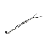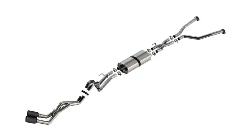 Includes Hybrid models. Will NOT fit with optional bed step. This Cat-Back system features a True Dual design with two full tail pipes that is unique in the industry. It was designed specifically for the Tundra 3.4L. The system features the aggessive BORLA ATAK muffler and Polyphonic Harmonizer Technology inside the muffler assembly which utilizes patented units that contain pipes of different diameters and lengths to create multiple exhaust notes that harmonize to deliver a clean, rich, full-bodied sound without any drone. The system also features a Merge X-Pipe for increased performance and improved sound. The system is finshed off with 4.5" carbon fiber with black anodized center tips. Systems with bright chrome on T-304 stainless steel tips and black chrome on T-304 stainless steel tips are also available. It is built with premium, high-quality austenitic T-304 stainless steel for a sharp appearance and long life. Our computer numerical control (CNC) manufacturing techniques ensures accurate fit and maximum performance. Mandrel bends ensure maximum flow & power. Best of all, BORLA stands behind every system with a Million-Mile Warranty. Just what you'd expect from the world's most experienced (and most winning) exhaust brand. System Features: Cat-Back Exhaust System 2.5" True Dual Design ATAK Sound Level No Drone Polyphonic Harmonizer Technology Dual 4.5" Carbon Fiber With Black Anodized Center Tips T-304 Stainless Steel Million-Mile Warranty