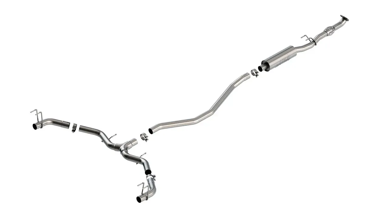 This 2.5" diameter BORLA Cat-Back system is the perfect addition to Civic Sport Touring vehicles. Our Cat-Back system is specifically tuned for the 1.5L turbocharged engine and is designed for easy, bolt-on installation. It features BORLA's Polyphonic Harmonizer Technology which utilizes patented units that contain pipes of different diameters and lengths to create multiple exhaust notes that harmonize to deliver a clean, rich, full-bodied sound. Our classic S-Type sound level delivers a sporty sound that enhances the driving experience without any drone inside the vehicle. The system features a 2.5" tail pipes that exit thru the O.E. tips/valance. Tips NOT included. Ultra-smooth mandrel bends ensure maximum flow & power, and precision computer numerical control (CNC) manufacturing ensures an accurate fit. To top it off, our systems are drone-free and made with premium, high-quality T-304 austenitic stainless steel to give you unmatched durability. Best of all, it comes with BORLA's Million-Mile warranty.
