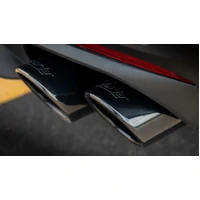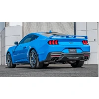 EXCEPT Convertible. This 3" diameter True Dual Quad Tip BORLA Cat-Back system features a merge X-Pipe for increased performance and improved sound. Muffler contains Polyphonic Harmonizer technolgy which utilizes patented units that contain pipes of different diameters and lengths to create multiple exhaust notes that harmonize to deliver a clean, rich, full-bodied sound. This system features the aggressive ATAK sound with no drone inside the vehand 4" black chrome on T-304 stainless steel tips, and is for vehicles WITHOUT the Active Exhaust feature. Using BORLA Stainless Steel Polish p# 21461 is NOT recommended with these black chrome tips. Systems with bright chrome on T-304 stainless steel tips, and carbon fiber tips are also available. If your car has 1 tip on each muffler and you want to upgrade it to 2 tips on each muffler (also know as quad tips), this is the system for you. It is designed to work with the quad tip (2 tips per muffler) O.E. Ford Valance ONLY. If you want to install this system on a vehicle that came with one tip per muffler you will need to buy and install a different valance. Ford quad tip valance part numbers: With Parking Sensors = PR3Z-17F828-DA, Without Parking Sensors = PR3Z-17F828-CA.