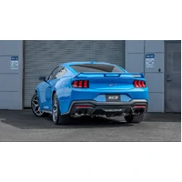 EXCEPT Convertible. This 3" diameter True Dual Quad Tip BORLA Cat-Back system features a merge X-Pipe for increased performance and improved sound. Muffler contains Polyphonic Harmonizer technolgy which utilizes patented units that contain pipes of different diameters and lengths to create multiple exhaust notes that harmonize to deliver a clean, rich, full-bodied sound. This system features the aggressive ATAK sound with no drone inside the vehicle and 4" carbon fiber tips, and is for vehicles without the Active Exhaust feature. Systems with bright chrome on T-304 stainless steel tips, and black chrome on T-304 stainless steel tips are also avaiable. If your car has 1 tip on each muffler and you want to upgrade it to 2 tips on each muffler (also know as quad tips), this is the system for you. It is designed to work with the quad tip (2 tips per muffler) O.E. Ford Valance ONLY. W/ Parking Sensors: PR3Z-17F828-DA. W/O Parking Sensors: PR3Z-17F828-CA.