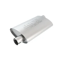 Notched necks for easy clamp-on installation using 1" wide band style clamps (clamps not included). Reversible design for installation flexibility. High-quality T-304 austenitic stainless steel will never rust. 100% welded construction for strength. Free Flow design for improved performance. High-temperature continuous-filament fiber (CFF) acoustic material for sound control. Natural mill finish can be brushed or polished prior to installation.