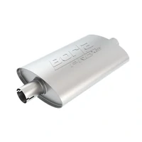 Notched necks for easy clamp-on installation using 1" wide band style clamps (clamps not included). Reversible design for installation flexibility. High-quality T-304 austenitic stainless steel will never rust. 100% welded construction for strength. Free Flow design for improved performance. High-temperature continuous-filament fiber (CFF) acoustic material for sound control. Natural mill finish can be brushed or polished prior to installation.